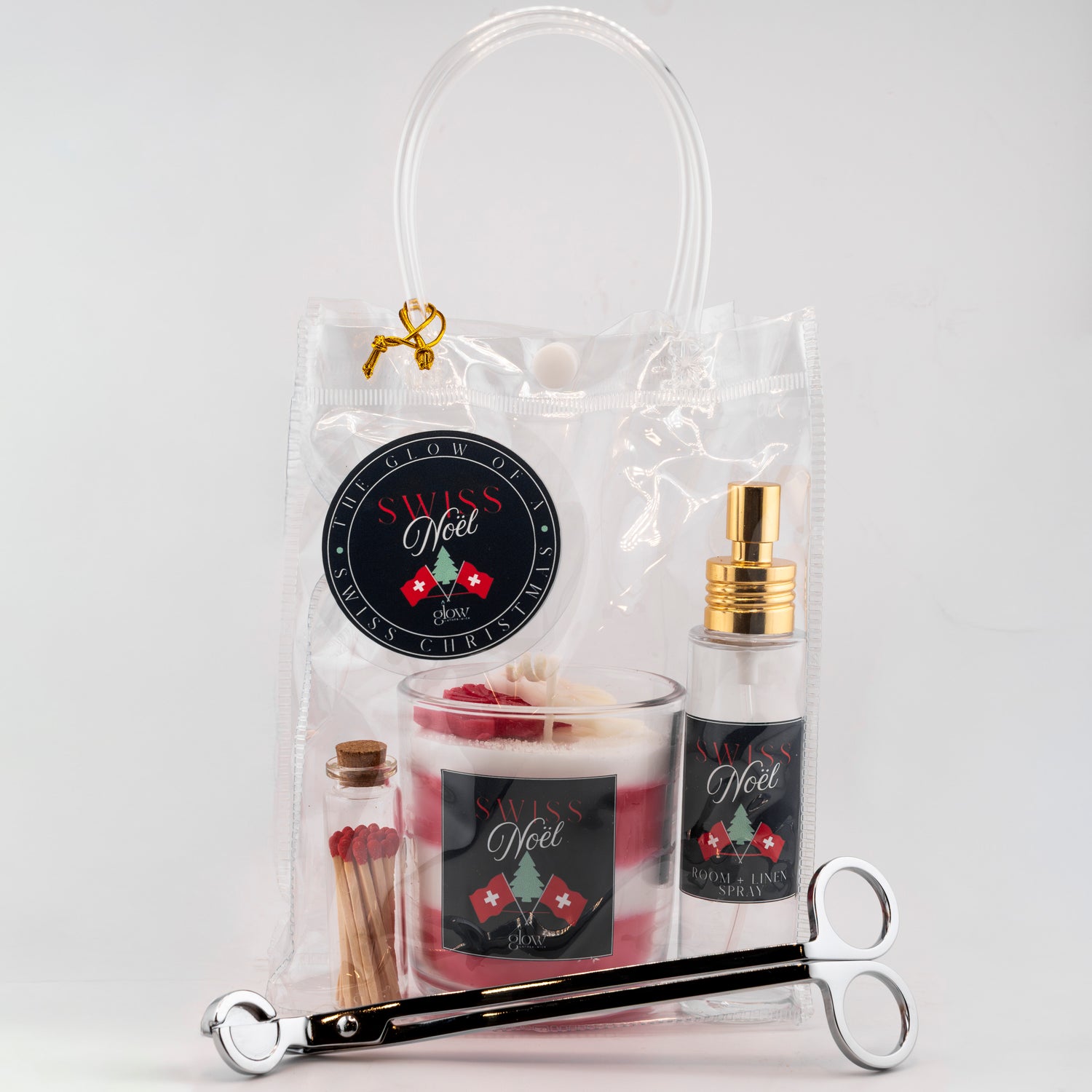 The Glow Ensemble is the ultimate Noël ritual. Every element — candle, soap, room spray, matches tucked in to ignite holiday rituals and alpine-inspired glow, and gold wick trimmer — invites you to pause, savor, and immerse yourself in Swiss-inspired traditions and Midway winter charm, turning every moment into a glow remembered.