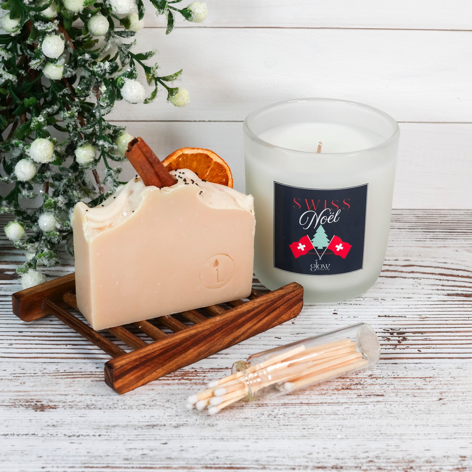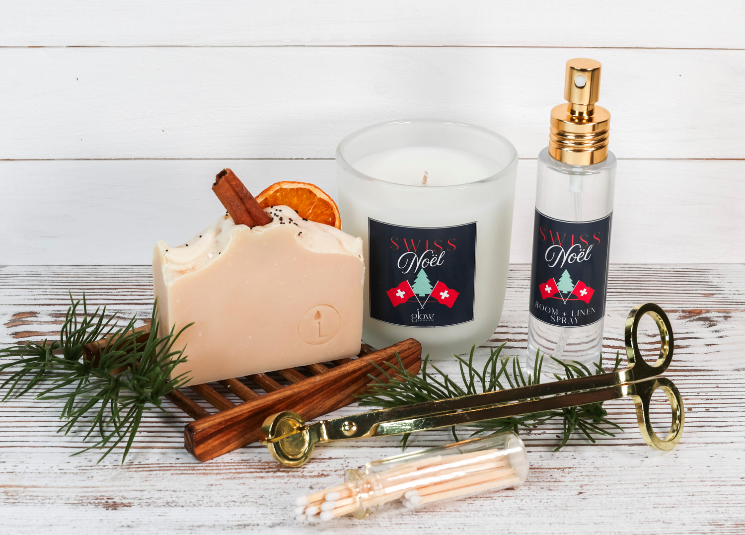 The Glow Ensemble is the ultimate Noël ritual. Every element — candle, soap, room spray, matches tucked in to ignite holiday rituals and alpine-inspired glow— invites you to pause, savor, and immerse yourself in Swiss-inspired traditions and Midway winter charm, turning every moment into a glow remembered.