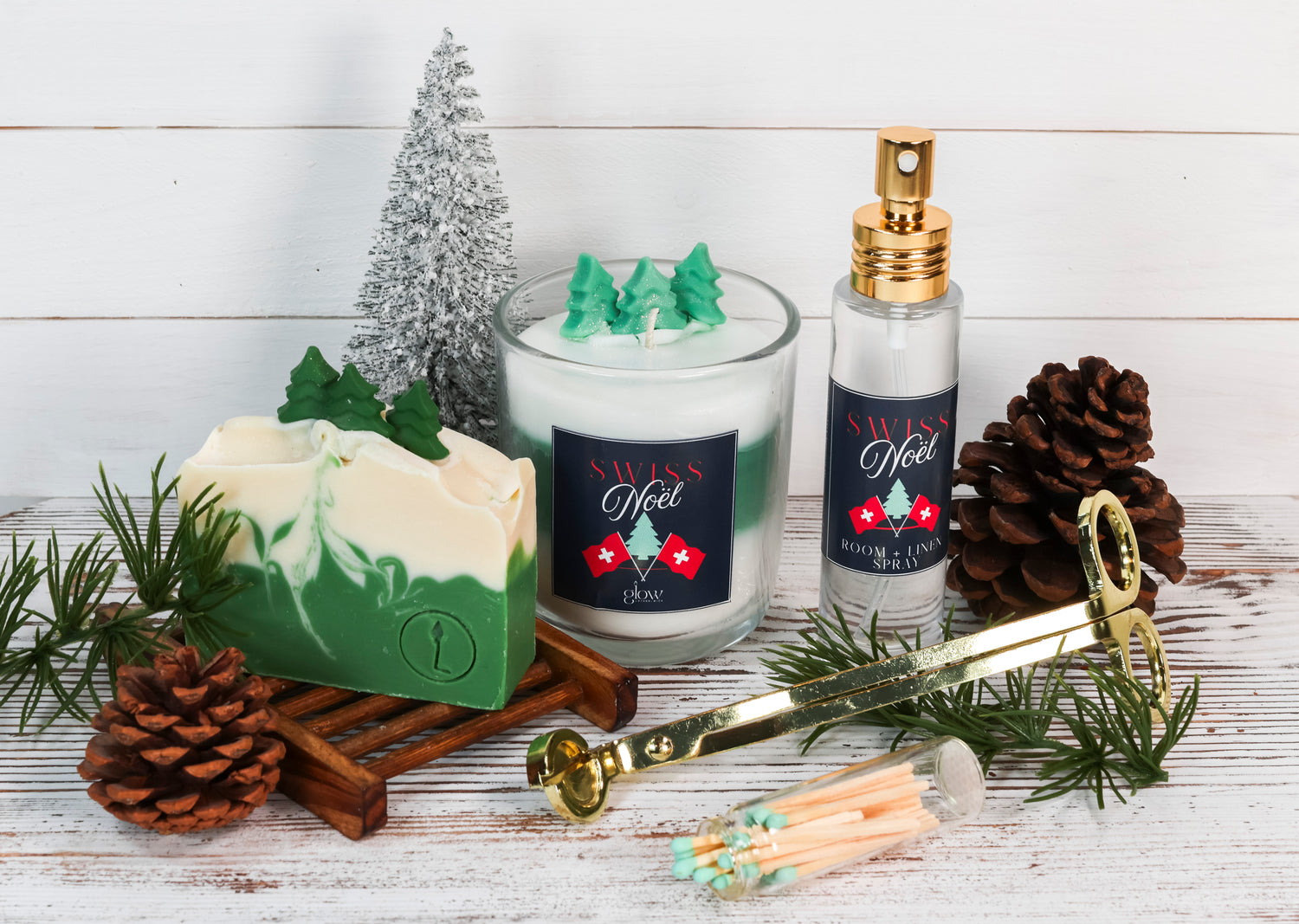 The Glow Ensemble is the ultimate Noël ritual. Every element — candle, soap, room spray, matches tucked in to ignite holiday rituals and alpine-inspired glow— invites you to pause, savor, and immerse yourself in Swiss-inspired traditions and Midway winter charm, turning every moment into a glow remembered.