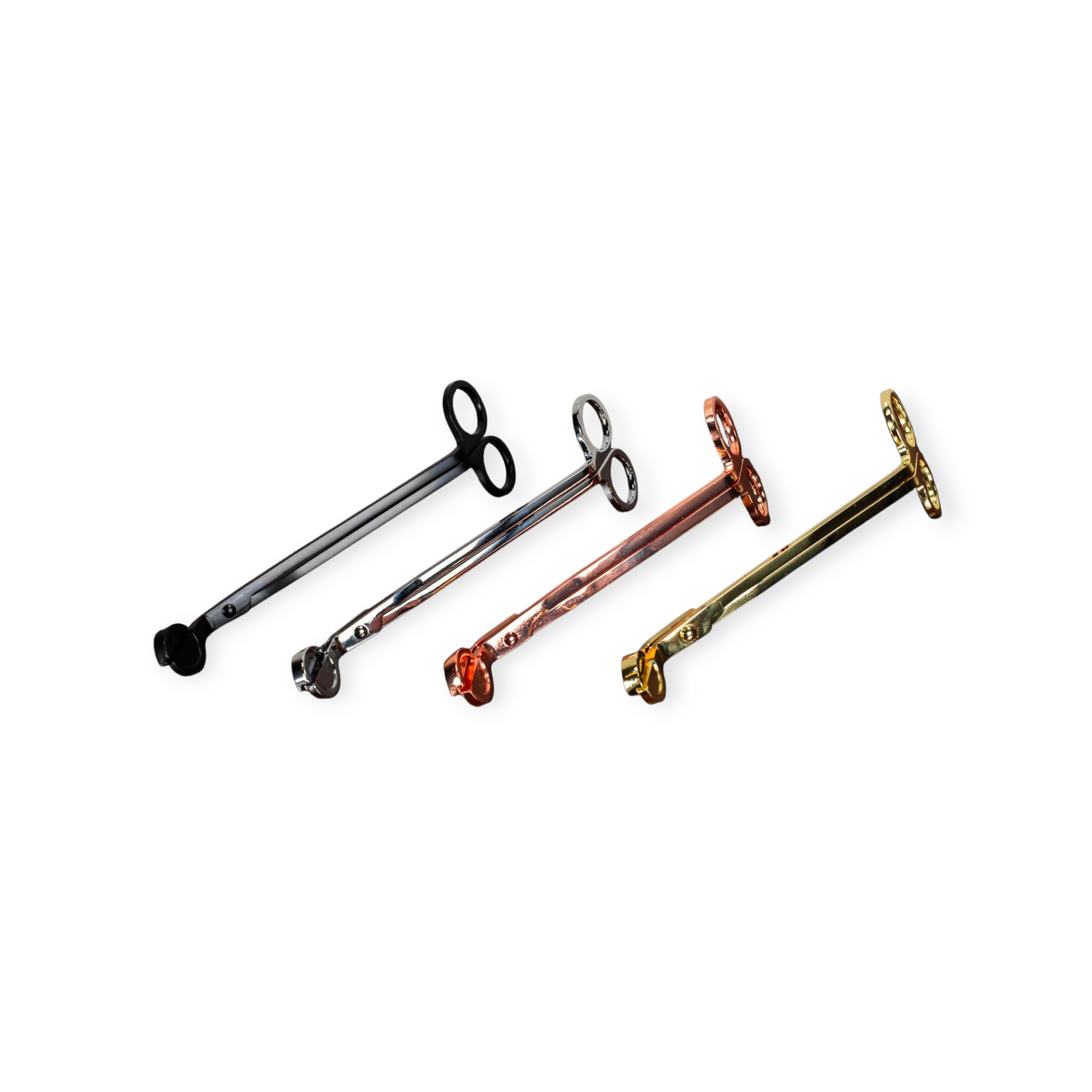 Keep your candles burning brighter and cleaner with our elegant wick trimmers, available in gold, black, silver, and rose gold. Designed to easily reach into jars and trim wicks to the perfect length, they help reduce soot, increase performance, and extend the life of your candles. A simple tool that adds a touch of glow-worthy style to your candle care ritual.